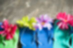 Then I started hot-gluing the flowers to the flip-flops and I alternated colors.