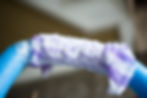 First, tape the noodle closes with tape. Then wrap it in either ribbon or scarves.